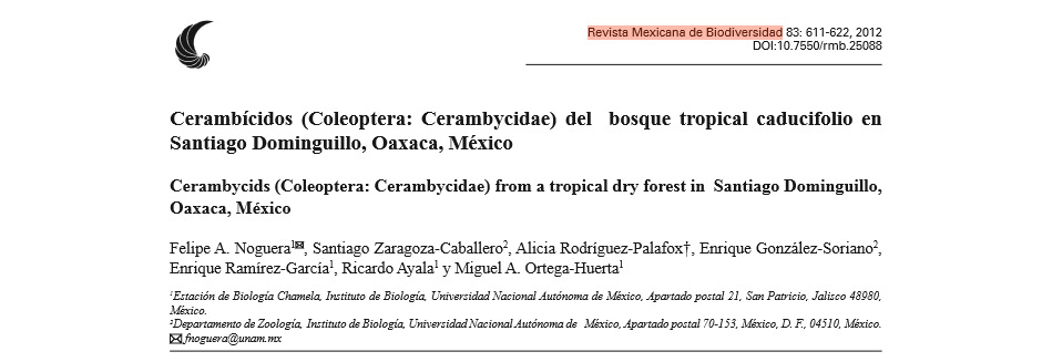 Cerambícidos (Coleoptera: Cerambycidae) del bosque tropical caducifolio en Santiago Dominguillo, Oaxaca, México